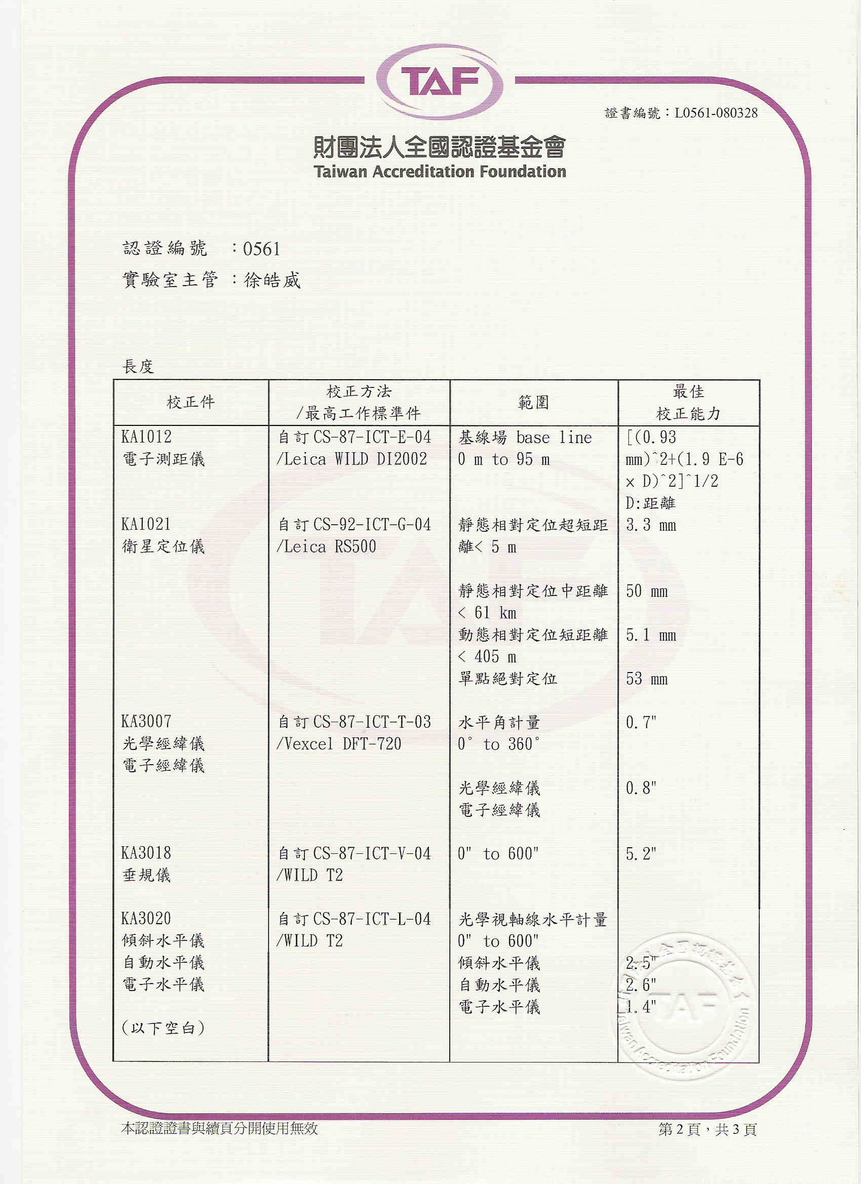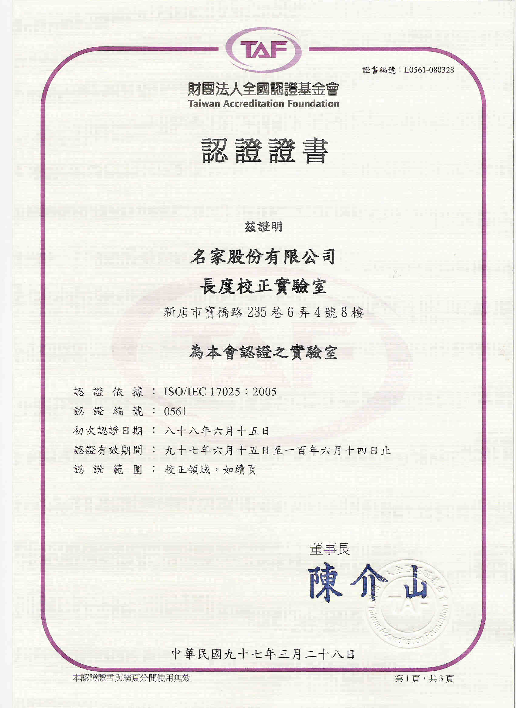 - 校正系統之品保方案,依據國際標準組織ISO/IEC 17025品質標準之要求設立。所有標準件均追溯至國家最高標準,並由合格的技術員以嚴謹的態度,執行品質系統的管理及校正工作的運作,確保校正結果的正確。